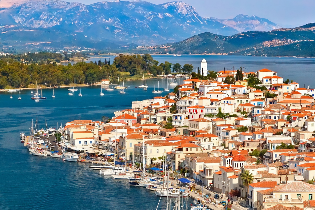 Poros città è una tappa irrinunciabile, ideale per chi voglia tuffarsi nella cultura greca, è bellissimo la sera quando il paese si illumina con ristorantini di pesce e vivace vita tra boutique e locali. A terra potrete visitare il Museo Archeologico o le rovine del Tempio di Poseidone e camminare dalla città su per la collina fino alla storica torre dell'orologio per una vista panoramica.