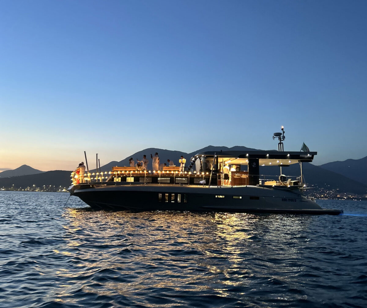 Il Golfo di Gaeta, uno dei tratti di costa più affascinanti del Tirreno, diventa la cornice di un’esperienza straordinaria. Lo spaziosissimo fly, pensato come postazione DJ e privé riservato, e l’ampio ponte di prua, vero e proprio palcoscenico sul mare, accolgono momenti unici, dove raffinatezza e atmosfera si fondono in un evento indimenticabile.
